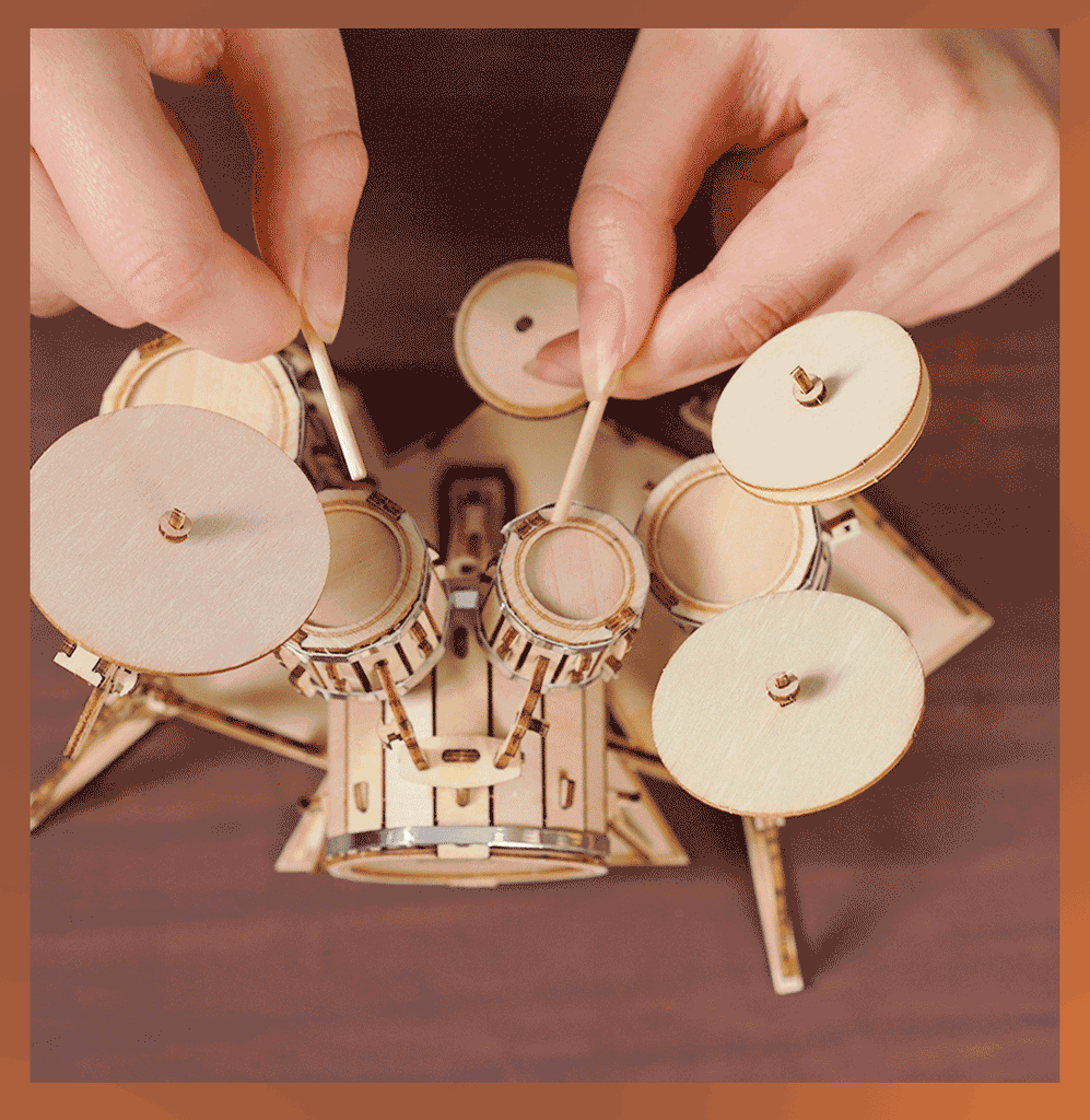 Rolife Drum Kit – tai pasidaryk pats miniatiūrinis būgnų komplekto modelis. Statinys labai mažytis, tačiau tiksliai atkartoja realius būgnus. Medinį konstruktorių galima surinkti vos per 1,5 valandos, tad puikiai tinka „pasidaryk pats“ pradedantiesiems.