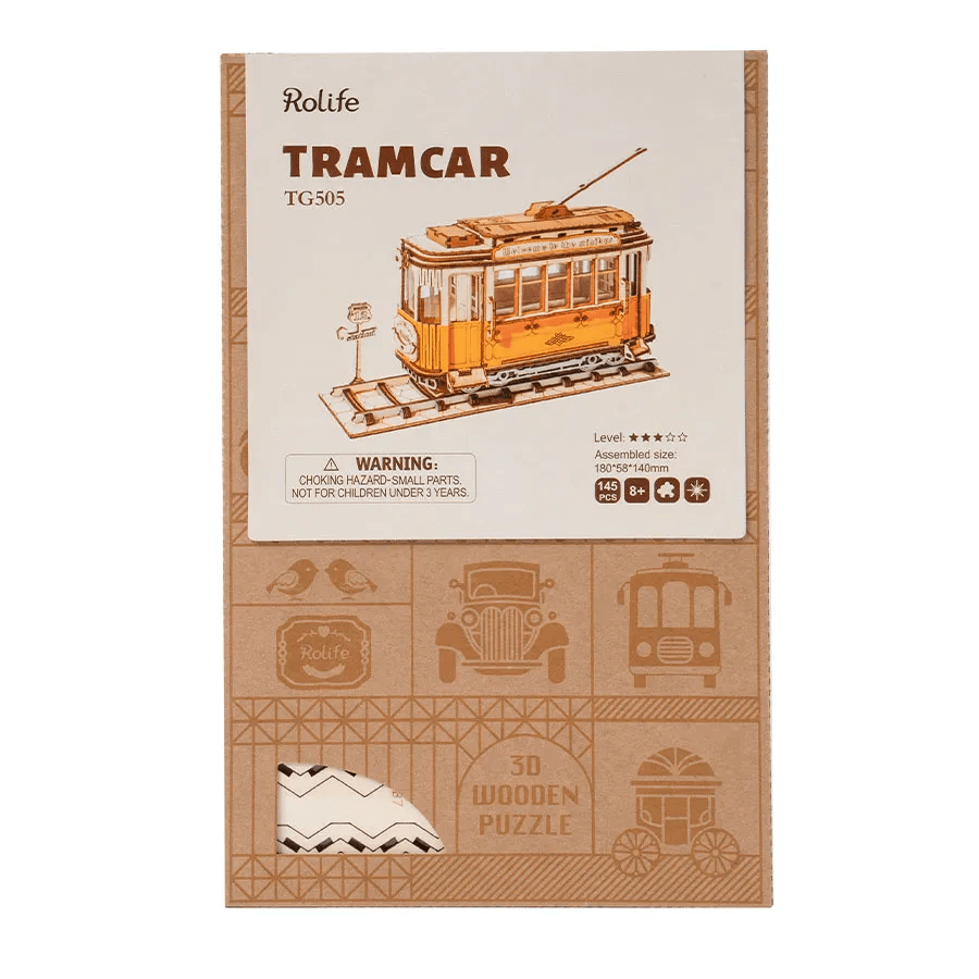 Rolife Tramcar – tai miniatiūrinio tramvajaus modelis. Surinkę 145 detales atkursite klasikinio tramvajaus vaizdą su bėgiais ir stotelės ženklus.
