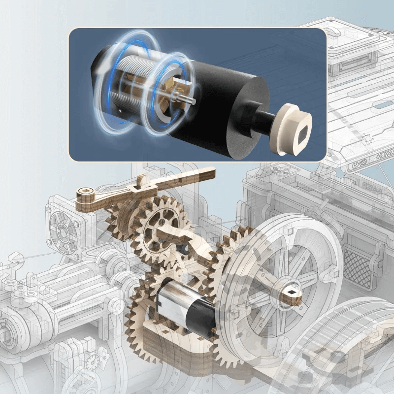 Robotime-ROKR Steam Engine – tai garo mašinos modeliukas su interaktyviu varikliu, kuriuo galite keisti greitį ir važiuoti atbuline eiga.