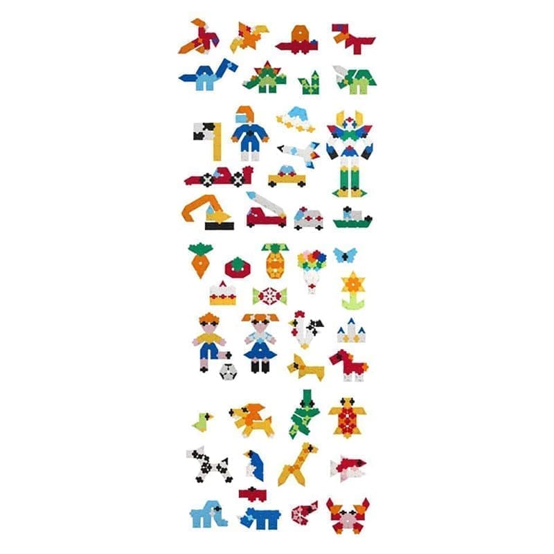 - 46 konstravimo schemos: dinozaurai, naminiai ir lauko gyvūnai, transporto priemonės, žmogeliukai, vaisiai ir kt.;