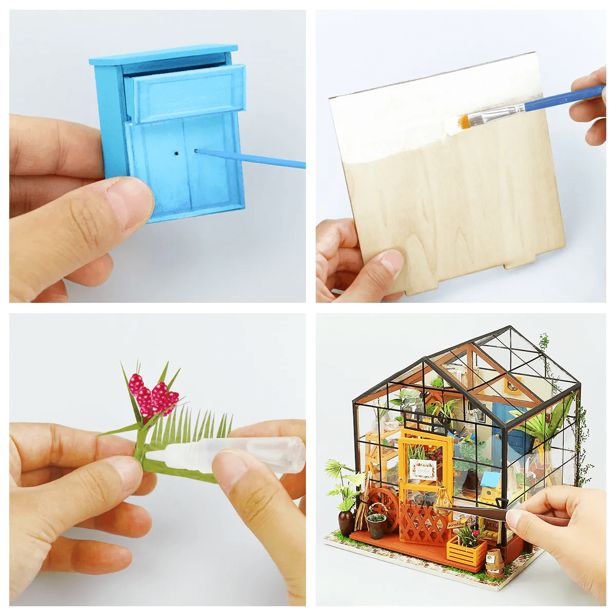 Ära karda oma kujutlusvõimet maja luues lennata lasta. Värvi seinad oma maitse ja stiili järgi. Komplekt sisaldab ka mitmesuguseid paberist väljalõikeid lillemaja ja muude miniatuursete detailide täiustamiseks.