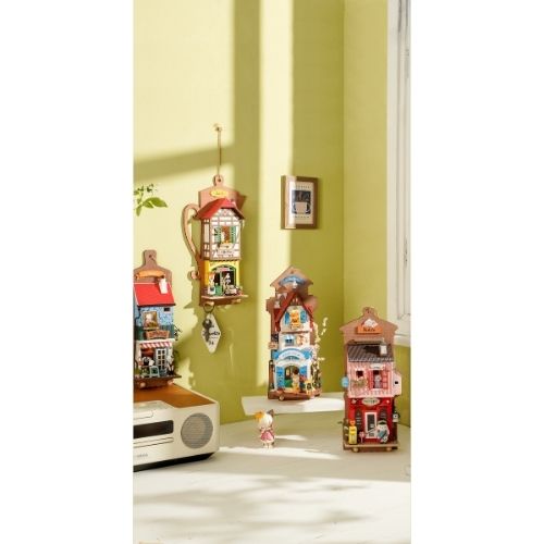 Rolife Aroma Toast Lab DIY Mini House on miniatuurne seinale kinnitatav Aroma Toast Cafe DIY Animal store sarjast. Poe omanik on Sofia, armas väike kass, kes on kirglik naabritele uute kookide ja leibade avastamise ja valmistamise suhtes. Tema kohal elab ka armas paar.