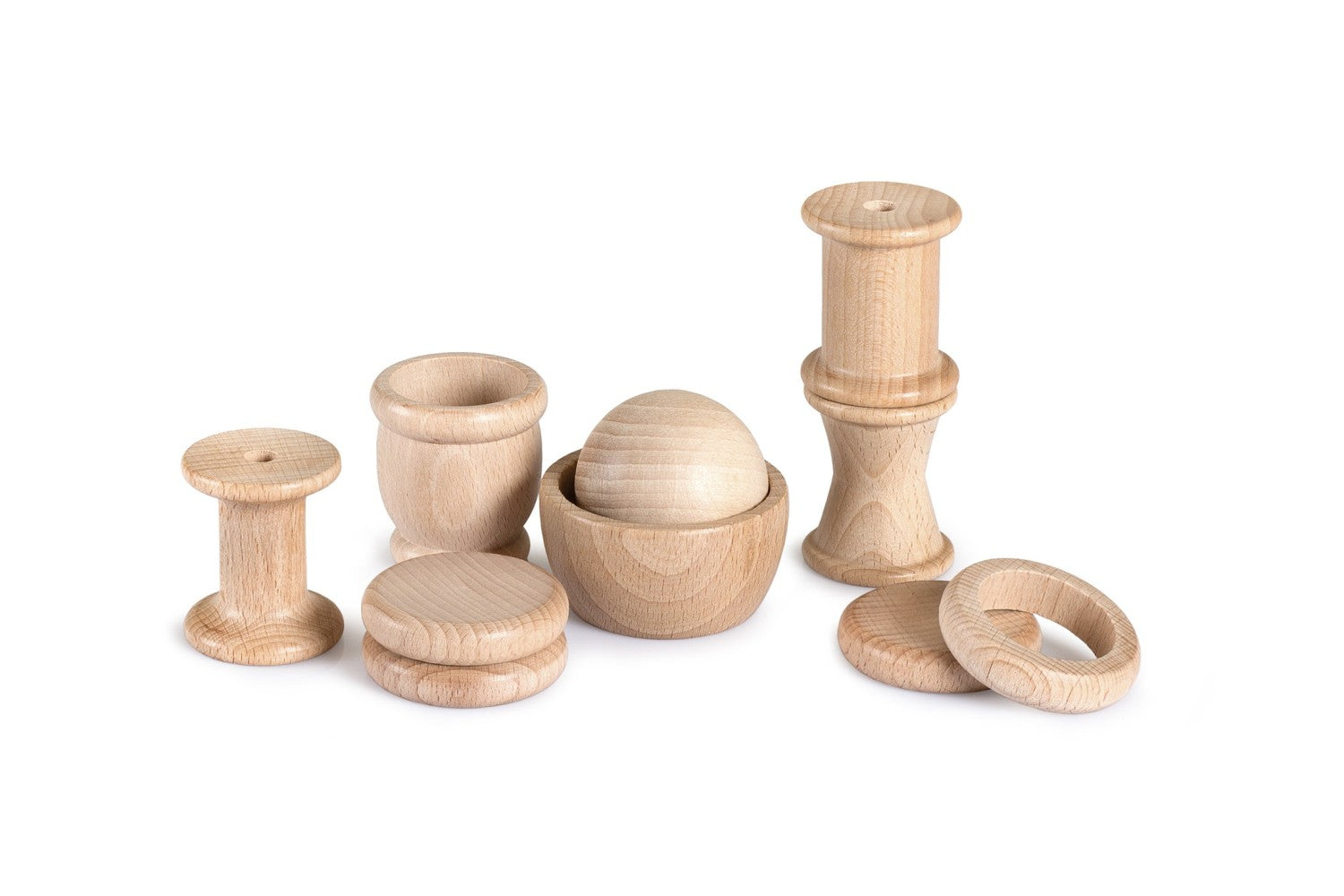 Komplekt sisaldab 10 naturaalsest puidust elementi, mis on töödeldud taimsete vahadega.