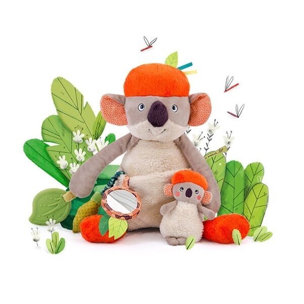 Plüüsist koaala paljude üllatustega, mis teie last lõbustavad ja ergutavad (peegel, närimisrõngas, piiksuv mänguasi, krõmpsuv paber, erinevad tekstuurid jne). See mänguasi on uskumatult armas ja mänguline! Sellest saab mitte ainult lõbus mängukaaslane, vaid ka hubane kallistuskaaslane. Täis huvitavaid tegevusi ja avastusi, nii et teie pisikesel ei hakka kindlasti igav!