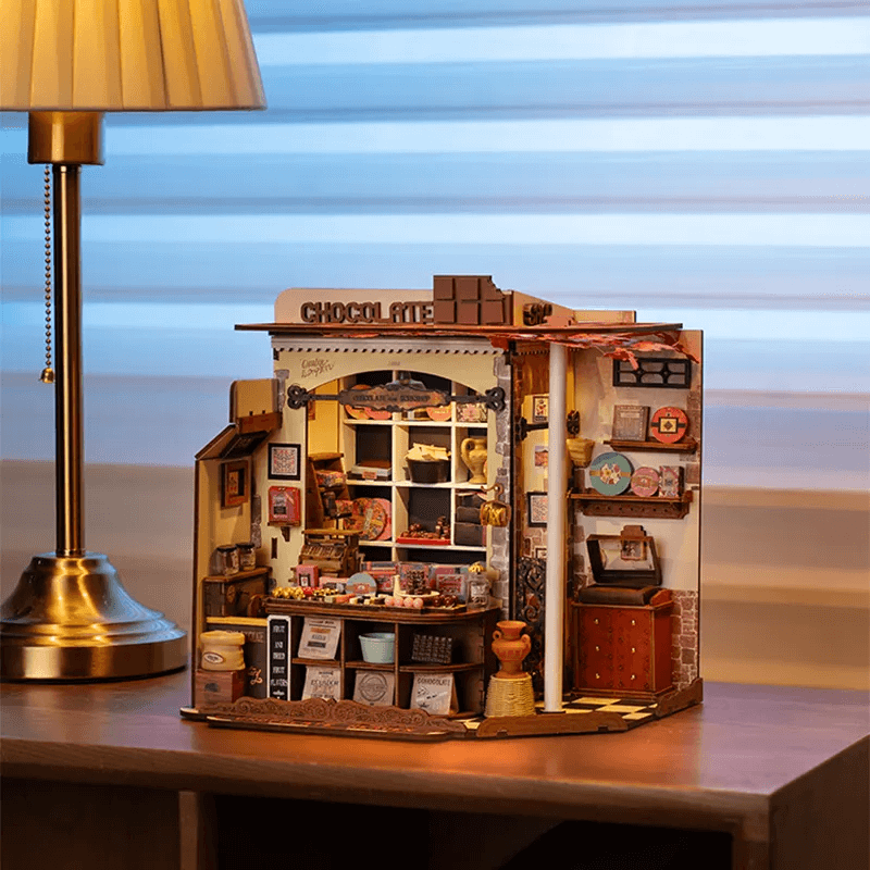 Nüüd on sinu kord saada meistrimeheks ja panna kokku see 330-osaline minimaja. Nautige mitmekihilist ja rikkalikku šokolaadipoe disaini, millel on plaaditud seinad, realistlik puitmööbel, traditsiooniline kassa ja värvilised maiustused. Lülita LED-tuled sisse, et näha oma meistriteost veelgi paremini!