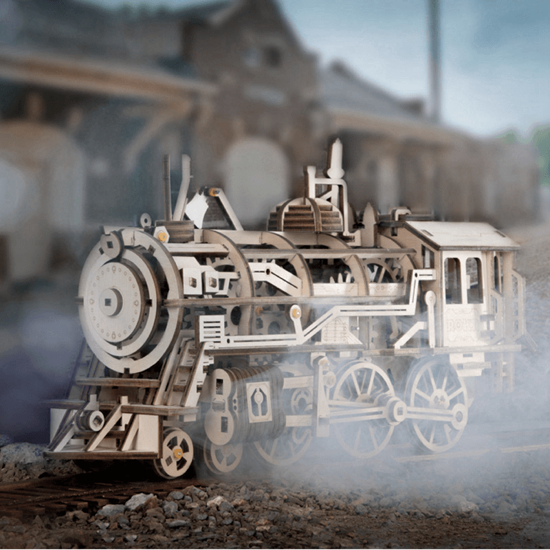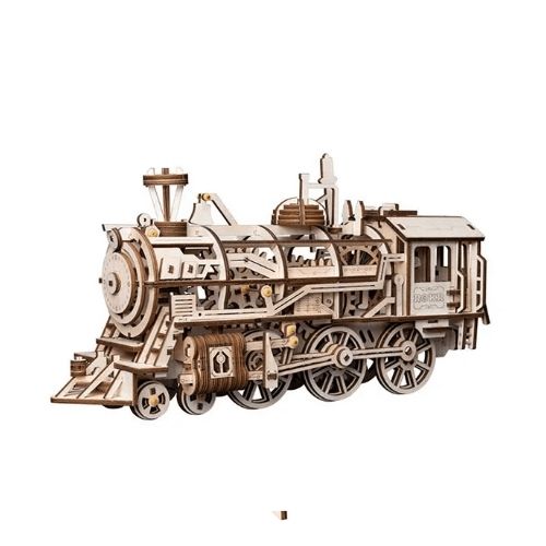 Pasidaryk pats „Robotime - ROKR“ mechaninis senovinis garo traukinio modelis - tai išskirtinio dizaino 3D medinė dėlionė. Puikiai atspindi senovinio traukinio - garo mašinos išvaizdą ir sandarą. Garvežys varomas spyruokliniu varikliu, suprojektuotas su pavaros mechanizmu.