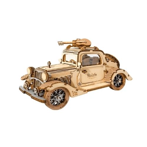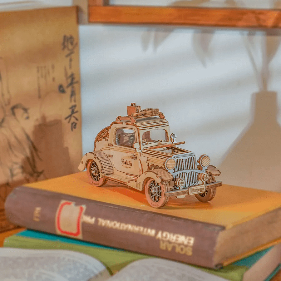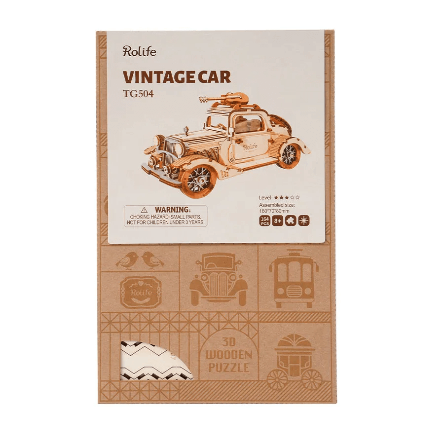 Rolife Vintage Car – tai retro stiliaus mini automobilio modelis. 3D medinis galvosūkis leis jums savo rankomis sukurti elegantišką ir rafinuotą klasikinio automobilio modelį. Ant automobilio stogo taip pat rasite gitarą ir lagaminą, kurie modeliui suteikia dar daugiau žavesio.