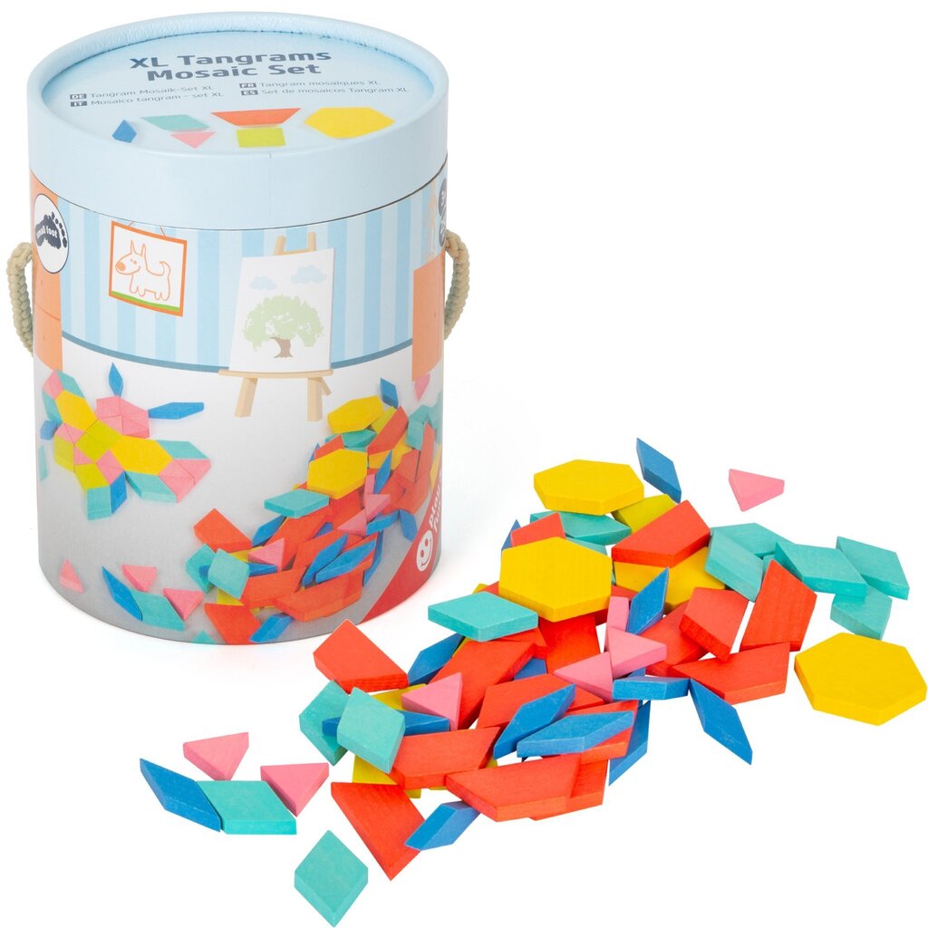 Spalvingas konstruktorius ypač dideliu formatu! Su šiuo gausiu mozaikos rinkiniu galite kurti įvairias figūras ir vaizdus. Pakuotėje yra 250 skirtingų spalvų medinių dalių 6 geometrinėmis formomis. Dėlionė skatina vaikų kūrybiškumą, lavina loginį mąstymą ir erdvinį matymą. Dalys laikomos apvalioje dėžutėje.