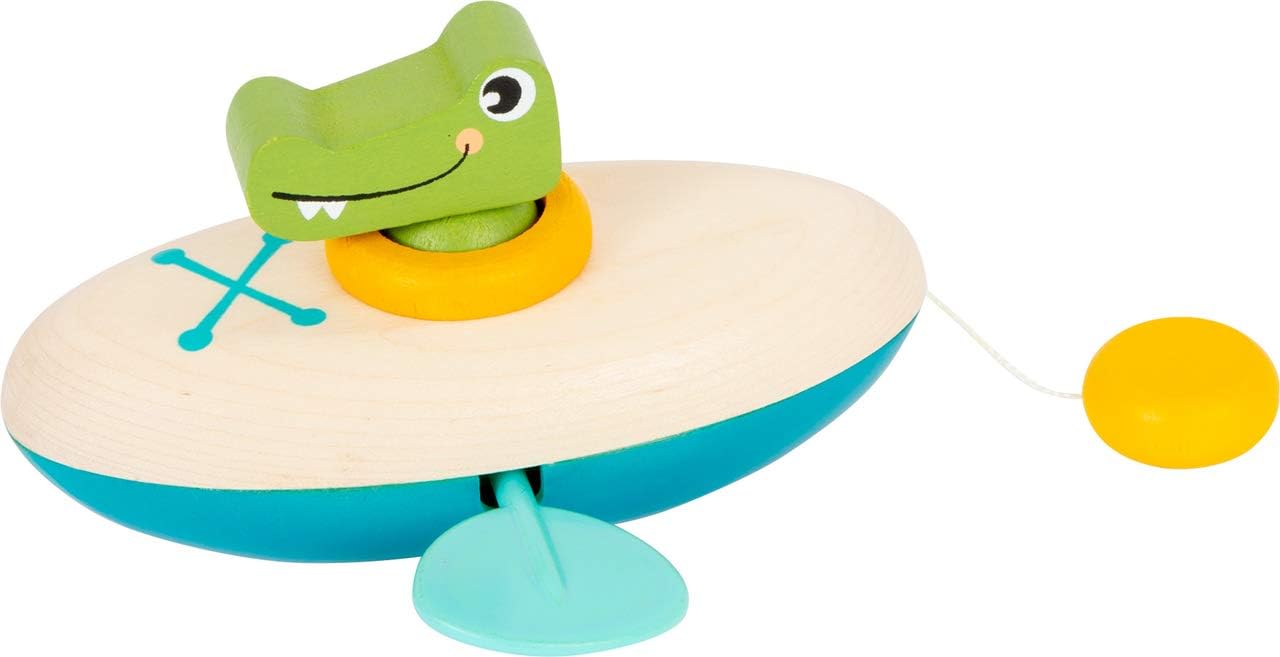 Mediniai vandens žaislai yra ekologiška alternatyva plastikinėms ir gumos žaisliniams gyvūnėliams! Žaisdami mažieji išmoks priežasties ir pasekmės principą - sukimo mechanizmas suka šoninius irklus ir leidžia kanojai savarankiškai judėti vandeniu. Mažas ir patogus krokodilas lengvai telpa į kiekvieną maudynių krepšį! Idealus žaislas voniai ar kūdikių baseinui, gali padėti mažyliui jaustis drąsiau vandenyje.