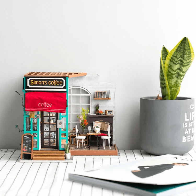 Rolife Simon's Coffee House DIY rinkinys – tai detalus ir subtilus kavos namelis, pasižymintis senoviniu prancūzišku stiliumi.