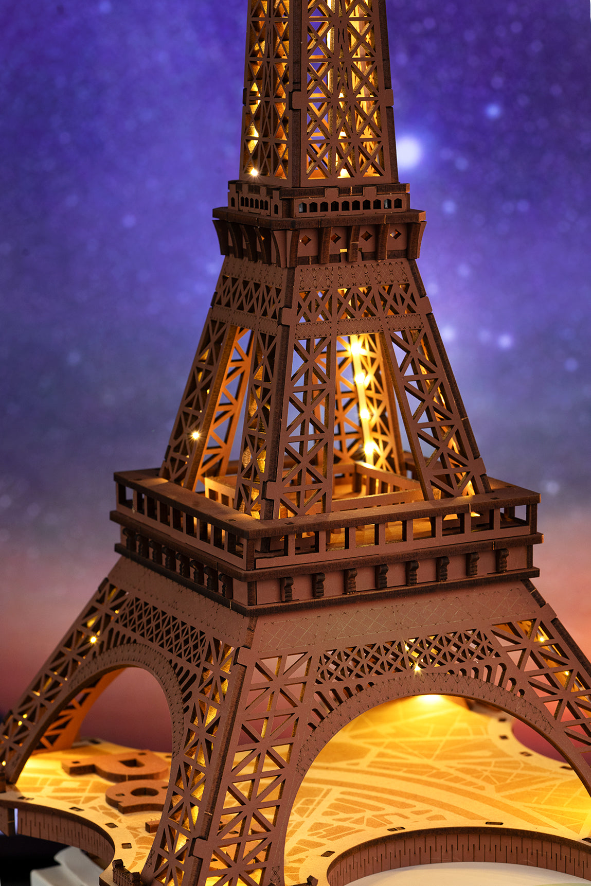 Robotime-Rolife Night of the Eiffel Tower – tai garsiojo meilės miesto Paryžiaus architektūrinis simbolis - Eifelio bokšto modelis. Modelis atkartoja Eifelio bokštą masteliu 638:1.