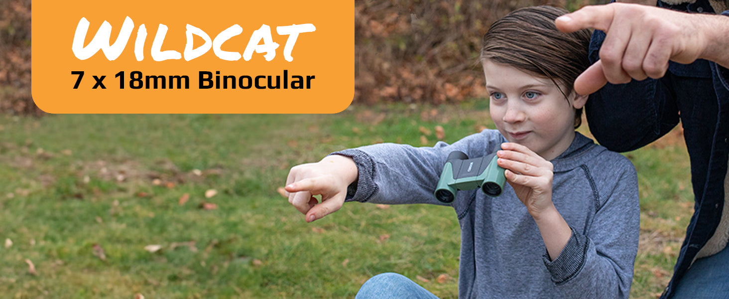 Wildcat™ sērijas 7x18 mm brīvas fokusēšanas binokļi ir lieliski piemēroti jaunajiem pētniekiem. Ar 7x palielinājumu un izturīgu, vieglu dizainu šie binokļi ir viegli lietojams instruments bērniem, kas pēta dabu.