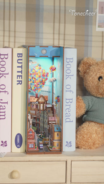 Pacelieties pāri ikdienai un dodieties sapņainā piedzīvojumā ar ekskluzīvu grāmatu balstu-mājiņu "Ceļojums ar gaisa baloniem". Šis burvīgais "dari pats" konstruktors aizved uz fantāzijas pasauli, kur mazā mājiņa paceļas augšup, nesama krāsainu gaisa balonu, it kā aicinot sekot sapņiem un doties tur, kur ved iztēle.