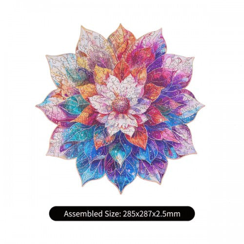 "Mistiskais mandalas zieds" ir koka puzles komplekts, kas izgatavots no īpašas formas gabaliņiem. Šī puzle ar piesātinātām krāsām un raksturīgu mandalas formu sniedz vizuālu baudījumu, un tās sarežģītais salikšanas process aizrauj puzļu cienītājus, jo tā kļūst par lielisku prāta vingrinājumu. Šī koka puzle var būt brīnišķīga dāvana sev vai saviem mīļajiem, un pēc salikšanas tā var kļūt arī par ekskluzīvu mājas dekoru.