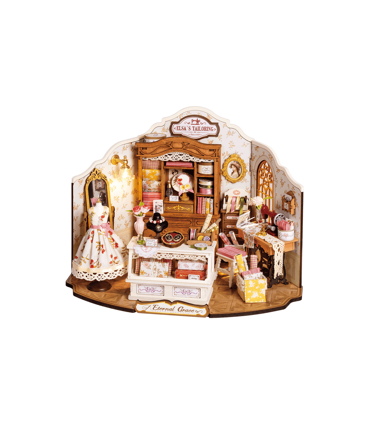 Šią studiją iki kraštų užpildo subtilūs audiniai, gėlių raštai ir vintažinis žavesys. Surinkite miniatiūrinį namelį „Elzės siuvykla“ ir papasakokite istoriją, slypinčią už kiekvienos ritės, eskizo ir audinio klostės iš Viktorijos laikų.