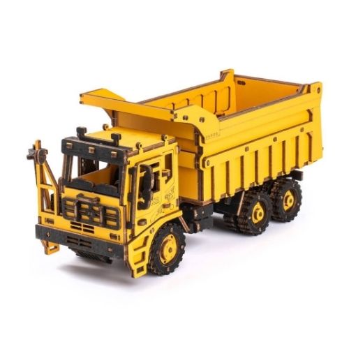 „Savivartis sunkvežimis“– nuostabus 3D Rokr medinis konstruktorius ir inžinerinės transporto priemonės modelis.